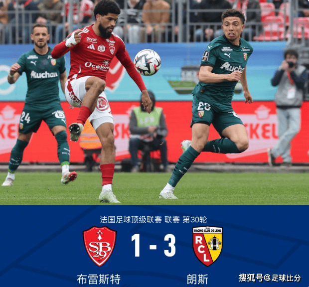 最终,全场比赛结束,朗斯3-1战胜布雷斯特。